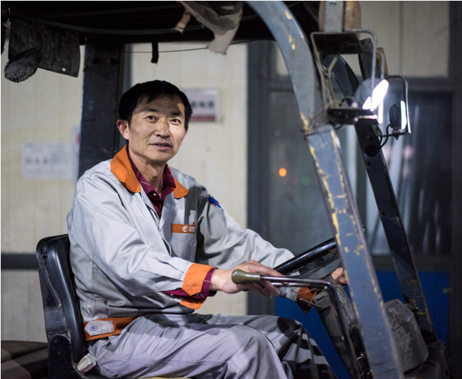 走過涂裝車間你總會聽見這幾句話,“師傅,麻煩叉一下這框毛胚”,“師傅,麻煩幫我叉一下這框產品到下掛處”,你就會看見劉師傅在嫻熟的操作下,鏟腳很準地插進鐵框下面的支架,提起,倒車,轉彎,開出車間,穩穩地放到指定地點上,整個過程一氣呵成。這就是我們的叉車師傅劉曙光。